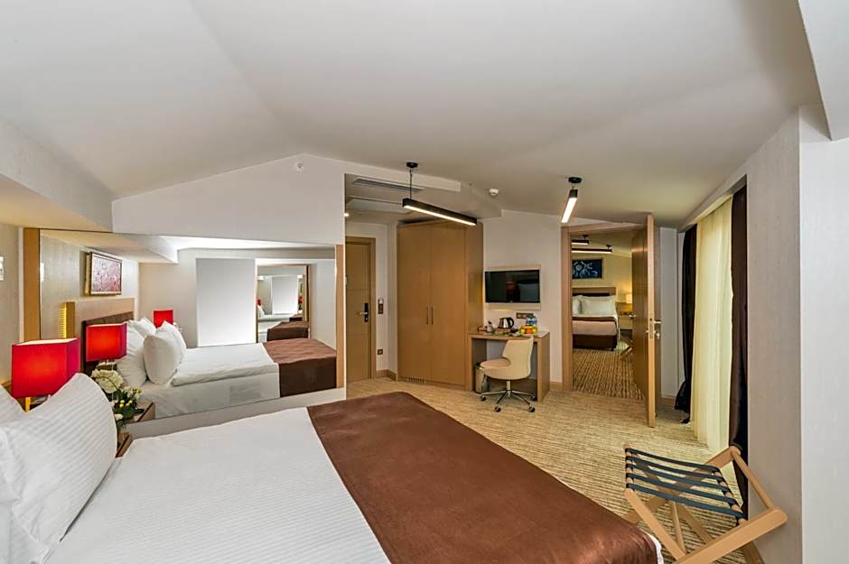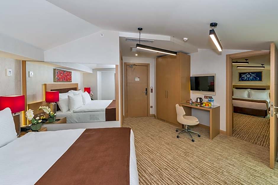 Featuring free toiletries, this family room includes a private bathroom with a walk-in shower, a bath and a hairdryer. The air-conditioned family room features a flat-screen TV with cable channels, soundproof walls, a mini-bar, a tea and coffee maker as well as city views. The unit has 3 beds.